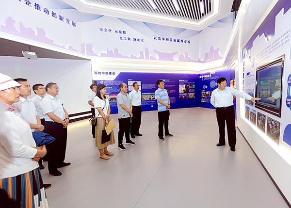 于新华副处长一行首先到集团公司展厅参观,对乐鱼官方在线登录入口-乐鱼(中国)发展历程、产业项目概况、未来发展规划以及党建工作进行全面了解。
