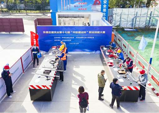 比赛现场,参赛选手一展身手,充分展现了怀柔区建筑工人们娴熟的操作水平和良好的精神面貌。